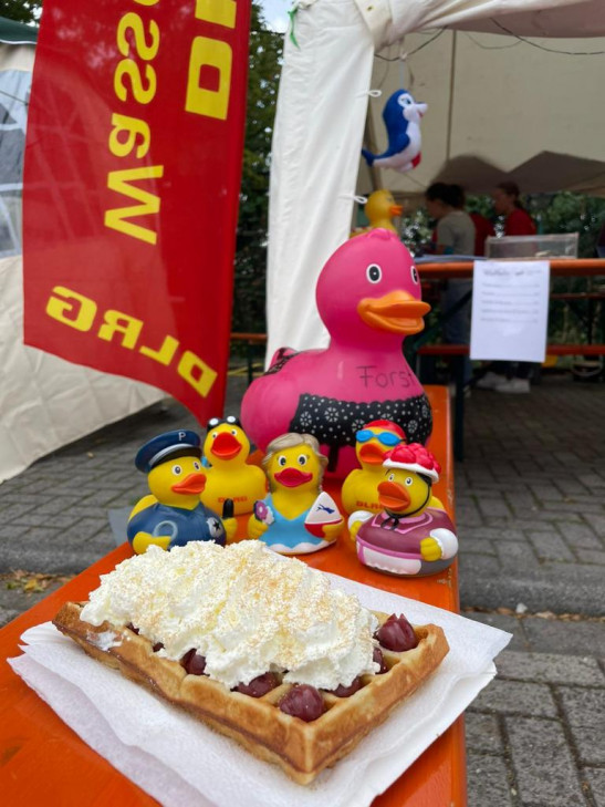 Auch in diesem Jahr veranstaltete der TV Forst am 22. und 23.07.2023 seine Kirmes auf dem Gelände der Waldseehalle, bei der auch unsere Jugend, wie im letzten Jahr mit einem Waffelstand vertreten war. Neben den klassischen belgischen Waffeln mit Puderzucker, konnten sich die Besucher*innen in diesem Jahr auch über Waffeln mit Kirschen und Sahne, sowie mit Apfelmus und Nutella und Banane freuen. An beiden Tagen gab es einen großen Ansturm auf die Süßspeisen und wir können von einen insgesamt erfolgreichen Wochenende berichten. Am Sonntag konnten sich die Besucher*innen außerdem bei einem Infostand über zahlreiche Einsatzbereiche der DLRG informieren. Neben Rettungsmitteln, wie dem Rettungsbrett und dem Gurtretter konnten sowohl Klein als auch Groß unser Boot erkunden und lernen, wofür ... Mehr erfahren